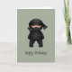 Adorable Chubby, aber furchteinflößend wenig Ninja ist in schwarzem Outfit gekleidet und trägt Katana - traditionelles japanisches Schwert.