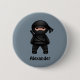 Adorable Chubby, aber furchteinflößend wenig Ninja ist in schwarzem Outfit gekleidet und trägt Katana - traditionelles japanisches Schwert.