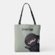 Adorable Chubby, aber furchteinflößend wenig Ninja ist in schwarzem Outfit gekleidet und trägt Katana - traditionelles japanisches Schwert.
