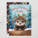 Diese bezaubernde Urlaubskarte zeigt eine niedliche Otter-Illustration, die einen festlichen Kranz aus Blume, Heiligen, Kiefern und Beeren trägt. Schneeflocken fallen sanft gegen den schneebewaldeten Hintergrund. Das kleine Otter guckt über den schneebedeckten Holzsteg, um Hallo zu sagen! Der spielerische Text "Frohe Weihnachtswünsche" fügt einen warmen saisonalen Gruß hinzu und kann nach Ihren Wünschen angepasst werden. Die Rückseite ist mit einem klassischen karierten Karo dekoriert, der dem Gesamtbild eine traditionelle Touch verleiht. Diese niedliche, spielerische Karte eignet sich hervorragend, um Familie und Freunden einen Feiertag zu vermitteln. Der Name und das Datum machen sie zu einem personalisierten Sake.