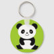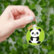 Niedlicher kleiner Cartoon schwarz-weiß Panda vor einem limig grünen Hintergrund.
