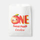 Celebrate a milestone with these One Sweet Peach first birthday favor bags. Featuring a blushing kawaii peach character with vibrant watercolor tones. A perfect choice for parents hosting a summer-themed "Sweet Peach" celebration for their little girl.