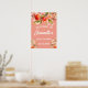 Greet your guests with the warmth of a sun-drenched orchard using this botanical welcome poster. The design showcases lush watercolor peaches and soft pink blossoms against a coral background. This is a beautiful choice for the entrance of a "Sweet Little Peach" baby shower or a summer garden celebration.