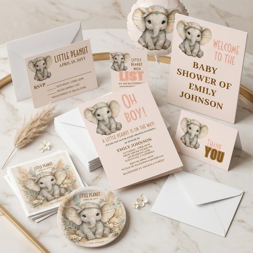 Little Peanut Boho Safari Elephant Boy Baby Shower Einladung