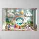 Ein farbenfrohe Wandgemälde schmückt ein Kinderzimmer mit einer fröhlichen Sonne, flauschigen Wolken und einem pulsierenden Regenbogen, der sich über den Himmel zieht. Unten spielen spielzeugähnliche Einhörnchen mit Regenbogenmännchen auf Holzfußböden, umgeben von einer reizvollen Landschaft, und schaffen eine fröhliche und fantasievolle Atmosphäre.Das kleine Pony hat leider ein wenig Pech! Dieses Bild steht auch zum sofortigen Download zur Verfügung und Sie können es einfach auf andere Poster-Größen und 1000's anderer Produkte übertragen.