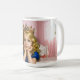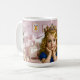 Artistic mug featuring a golden-haired girl with a jeweled crown in a pink fairytale bedroom, symbolizing innocence, imagination, and royal charm.