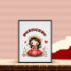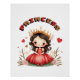 Niedliche kleine Prinzessin in rotem Kleid mit Blume und Herzen auf weißem Hintergrund