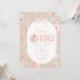 Ein niedlicher Kürbis! Bläserkürbis und Bogen Themed Girl's 1. Geburtstag Einladung mit neutralem Hintergrund mit Gänsen, Kürbis und niedlich rosa Bogen.
