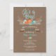Little Pumpkin Baby Dusche Einladung für Jungen mit Aqua-, Braun- und Orangenfarben. Der Hintergrund ist ein dunkelbrauner Einbrucheffekt.