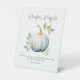 Fügen Sie Ihrer Herbstdusche eine charmante Touch mit diesem Blue Little Pumpkin Diaper Raffle Table Sign! Dieses Schild mit seinem weichen, blauen Kürbis und den eleganten Blätter ist ideal, um die Gäste zu einem Besuch bei der preisgekrönten Tombola oder beim Windeln zu führen. Es wurde entworfen, um sich mit der Erholung Ihrer Blue Little Pumpkin Kollektion abzustimmen, und bringt Wärme und saisonalen Stil zu Ihrem Geschenktisch oder Eingang.