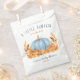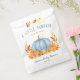 Little Pumpkin ist unterwegs, eleganter Herbst / Herbst Baby Dusche Gefallen Taschen in blau und orange für ein Baby-Baby-Dusche. Personalisieren Sie den gesamten Text einfach. Kate Eden Art