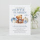 Little Pumpkin Blue Gingham Fall Boy Baby Shower Einladung