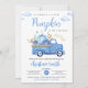 Niedliche Little Pumpkin Blue Rustic Truck Baby Boy Dusche Einladung.