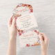 Die Kürbis-Herbst-Babydusche mit einer zusätzlichen, dielleren Riffelkarte. Die Einladung zeichnet sich durch ein zartes Aquarelldesign mit Herbstblättern und Blume in warmen Farbtönen Orange, Rot und Rosa aus. Die Einladungen zeigen wunderschön handbemalte Kürbisse, umgeben von lebhaften Blätter und Blüten, Set vor einem weichen, cremigen Hintergrund. Elegante Skript-Schriftart sorgen für eine Touch an Eleganz, während subtile Aquarellwaschbecken ein charmantes, rustikales Ambiente schaffen. Die Einladung ist sorgfältig konzipiert, um einen warmen und einladenden Rahmen zu schaffen, der perfekt zum Feiern der bevorstehenden Ankunft ist.