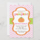 Unser zauberhaftes Little Pumpkin Girl Birthday Party Einladung bietet einen Zickzack Hintergrund in Rosa und Weiß mit orangen und grünen Akzenten und einem niedlichen Kürbisthema. Ideal für die Kürbis-Fest Ihres kleinen Mädchens!