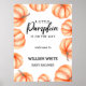Orange Pumpkin Halloween Baby Dusche Begrüßungszeichen Poster, Ein kleiner Kürbis ist auf dem Weg! zerebnen Sie Ihre Babydusche Halloween, Herbst Herbst mit diesem niedlichen Aquarellkürbis und elegante moderne Kalligraphie Typografie auf weiß.
