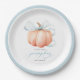 Little Pumpkin on Way Blue Bow Baby Shower Pappteller