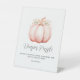 Fügen Sie Ihrer Herbstdusche eine charmante Touch mit diesem Pink Little Pumpkin Diaper Raffle Table Sign! Dieses Schild mit weichen, rosa Kürbis und eleganten Herbstdetails ist ideal, um die Gäste dazu zu bringen, ihre Eintrittskarten für die Windeln und Windeln abzulegen. Es wurde entworfen, um sich mit der Erholung Ihrer Pink Little Pumpkin Kollektion abzustimmen, und bringt Wärme und saisonalen Stil zu Ihrem Geschenktisch oder Eingang.