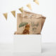 Rustic-style baby shower collection, decorated with soft colors and a vintage watercolor image of a cute little bunny with a parasol, in a style similar to Beatrix Potter's Peter Rabbit.