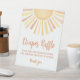 This small diaper raffle sign is perfect for guiding guests to drop off their diapers and entry cards. Featuring a warm and cheerful sun-themed design, a classic sun with rays in shades of yellow and orange sits prominently on the right side, adding a soft and timeless touch. On the left, “Diaper Raffle” is displayed in a rich burnt orange tone using clean, modern typography for a cohesive look.