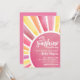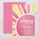 Celebrate the upcoming arrival with this bold and cheerful sun-themed baby shower invitation. A large pink sun fills the design, with its rays extending around the left and top edges for a radiant, eye-catching look. The event wording is centered within the sun in crisp white fonts, blending modern script and classic styles for a clean, balanced feel.