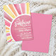 The back features a solid pink background for a smooth and coordinated finish. Fully customizable, you can adjust the wording and fonts to suit your celebration. This sweet design offers a fresh mix of boho, retro, and modern style—perfect for honoring the mom-to-be and welcoming a little ray of sunshine. Available as a printed invitation or digital download.