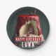 Geburtstagspapier-Teller mit einem kleinen Rotkäppchen-Geburtstagstorte mit "Happy Birthday", einem kühnen Schriftart. Passen Sie es an, indem Sie Ihren Namen hinzufügen.