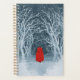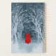 Kleine Red Riding Hood auf einem schneebedeckten Winterwanderweg durch den Wald. Können Sie den Großen Bad Wolf in der Ferne heulen sehen? Eine grungy Version einer negativen Aquarellmalerei.
