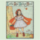 This is a beautiful reproduction of an antique children's book illustration, capturing the innocence and wonder of the classic Brothers Grimm tale, Little Red Riding Hood. The young heroine is depicted in a charming, slightly retro style, wearing a white spotted dress, bright red boots, and her famous hooded cape. The scene is framed by a tree and wildflowers, with a colorful butterfly adding a playful touch. The title "Little Red Riding Hood" is set in a decorative, vintage font at the top. This artwork is ideal for nursery décor, teacher gifts, book lovers, and anyone looking for a unique, nostalgic design that celebrates literary classics.