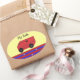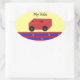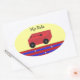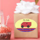Ein cooler kleiner roter Wagen mit schwarzem Griff und Rädern. Gelber Hintergrund und rote und blaue Streifen mit kleinen gelben Sternen.
