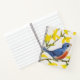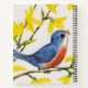 Dieses Wendelheft ist weiß mit einem kleinen singenden blauen und roten Vogel, der auf einem Ast in einem Baum sitzt, der an der Vorder- und Rückseite mit hübschen, gelben Blüten bedeckt ist.