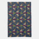 Das Originalmuster auf diesem Küchentuch ist eine originelle Illustration kleiner Singvögel durch ZoeSPEAK. Die Vögel stehen sich gegenüber, als würden sie miteinander singen, vor einem tiefblauem Meeresgrund, der mit winzigen gelben Sternen übersät ist. Es gibt vertikale Reihen von wirbelnden roten Bändern, mit Gruppen von grünen Blätter zwischen den kleinen braunen Vögeln.
