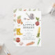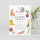 This cute gender-neutral "a little sprout is on the way" baby shower invitation features a white background with a watering can, gardening fork, radish, corn, leek, carrot, garlic, tomato, flower pot, bulb, seeds and gardening boots. The reverse side features a cream background with floral patterns. Personalize for your needs. You can find more matching products at my store.
