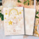 Bohemischer Regenbogen Erstgeburtstag Einladung in gedämpftem Rosa, magischem Staub und goldglänzenden Sternen. Klicken Sie auf die Schaltfläche "Weitere Anpassung", wenn Sie den Stil und die Position des Textes neu ordnen und formatieren möchten.