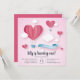 Feiern Sie den Geburtstag Ihrer kleinen Freundin mit diesen zauberhaften Einladungen in rosa Herz. Diese süßen rosa Karten sind perfekt zum ersten Geburtstag oder zum Valentinstag geeignet und verfügen über herzförmige Heißluftballons, die in den Wolken schwimmen. Ein Ballon folgt einem Banner, der individuell angepasst werden kann (gezeigt mit "unserem kleinen Liebling"). Personalisieren Sie Ihre Party-Details unten.