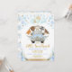 Diese bezaubernde Einladung mit zartem blau-goldfarbenem, herzförmigen Ballons und niedlichen Waldtieren in einem niedlichen blauen Auto
