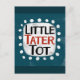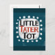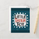 Ein niedliches typografisches Design, das "Little Tater Tot" sagt. Es ist schwarz und rot auf einem weißen Rechteck mit funky, spielerisch weißen Punkten, die ihn umgeben, alles auf einem aquamarinen Hintergrund.