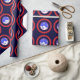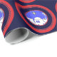 Tief blaues, rotes und weißes gemustertes Verpackungspapier für Weihnachten. Das Bethlehem-Symbol macht ein saisonales Design. Diese Version wird verbessert und aktualisiert, um das Bild zu verfeinern.