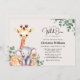 Mit dieser niedlichen Safari-Babydusche lassen Sie Ihre Babydusche unvergesslich werden. Das Design ist mit einer zauberhaften Aquarellgiraffe, einem Tiger und einem Elefanten ausgestattet, was es stilvoll und charmant macht, während der Satz "Ein Kleiner ist unterwegs" der Karte ein spielerisches Element hinzufügt. Verwenden Sie die Entwurfstools, um Text, Schriftart und Farbe anzupassen.