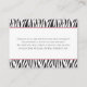 This Little Wild One Zebra Safari Books for Baby Enclosure Card features bold black-and-white zebra print borders with soft pink accents for a stylish safari look. The front showcases a sweet hand-drawn zebra mama and baby in detailed black ink, surrounded by moody mauve and lilac roses with delicate twigs for a romantic, modern floral touch.