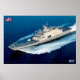 Das Küstenbekämpfschiff (LCS) ist ein Set von zwei Klassen von relativ kleinen Oberflächenschiffen, die für flache Tiefgangsoperationen in der Nähe der Küste durch die Marine bestimmt sind. Die Freedom-Klasse und die Independence-Klasse sind die ersten beiden LCS-Varianten. Jede hat die Fähigkeiten eines kleinen Angriffstransports, einschließlich eines Flugdecks und Hangars für den Unterhalt zweier Seahawk-Hubschrauber, einer Heckrampe für den Betrieb kleiner Boote, und das Frachtvolumen und die Nutzlast, um eine kleine Angriffstruppe mit Kampffahrzeugen zu liefern. Die visuellen Informationen dieses Produkts wurden von Wings In Motion Productions Inc. und/oder dem US-Verteidigungsministerium (DoD) bereitgestellt. Das Auftreten von DoD-visuellen Informationen impliziert oder stellt keine DoD-Unterstützung dar.