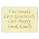 Leben Sie einfach, Liebe großzügig, kümmern Sie sich sehr, sprechen Sie freundlich. Worte, die jeden Tag zu leben. Entwickelt für gelbe Hintergründe.
