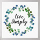 Dieses moderne Plakat mit den Worten der Ermutigung, "Live Simply", die sich ändern oder mit Ihren eigenen ermutigenden Worten anpassen lassen, zeichnet sich durch trendige Aquarellfarben-Eukalyptus-Kreidegrün aus.