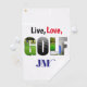 Mit diesem Live, Liebe, Golf Handtuch mit einer farbigen Collage von Golfszenen, drücken Sie Ihre Liebe für das Golfspiel aus. Auch macht ein großartiges Geschenk für Muttertag, Vatertag, oder einen Geburtstag. Personalisieren Sie die Monografie oder den Namen Ihrer Wahl. Die Farbe und der Schriftart des Textes können nach Ihren Wünschen geändert werden.