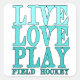 Live, Liebe, Play - Field Hockey Quadratischer Aufkleber