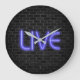 LIVE Text in Neonleuchten auf Backstein Große Wanduhr