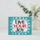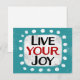 "Live Your Joy" ist ein niedliches inspirierendes oder motivierend Zitat mit einer weißen Akzent-Form, umgeben von weißen, texturierten, whimsikalen Punkten.