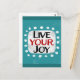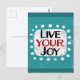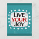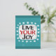 "Live Your Joy" ist ein niedliches inspirierendes oder motivierend Zitat mit einer weißen Akzent-Form, umgeben von weißen, texturierten, whimsikalen Punkten.