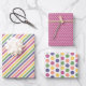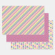Bring cheerful energy to any gift featuring a vibrant pink, green, yellow, orange and blue patterned designs. This modern combination includes a diagonal striped pattern, a polka dot pattern of pink, green, yellow, orang and blue and a solid color pattern with several color options available. This set will add fun and a colorful touch to any birthday, celebration, holiday, or everyday gifting. The clean white spacing between each stripe keeps the look fresh, playful, and versatile for all ages. Perfect for wrapping presents, crafting projects, party décor, or adding a pop of color to your packaging. Tie any matching bow or ribbon for a finished look.