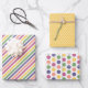Bring cheerful energy to any gift featuring a vibrant pink, green, yellow, orange and blue patterned designs. This modern combination includes a diagonal striped pattern, a polka dot pattern of pink, green, yellow, orang and blue and a solid color pattern with several color options available. This set will add fun and a colorful touch to any birthday, celebration, holiday, or everyday gifting. The clean white spacing between each stripe keeps the look fresh, playful, and versatile for all ages. Perfect for wrapping presents, crafting projects, party décor, or adding a pop of color to your packaging. Tie any matching bow or ribbon for a finished look.